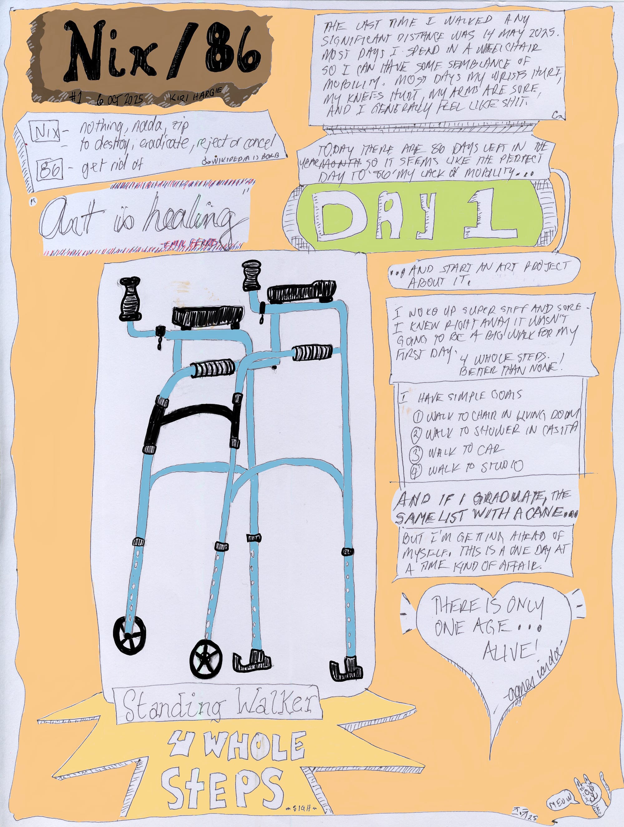 Nix/86 is an autobiographical novel/zine/comic that I am working on during the last 86 days of 2025 about struggles to get more mobile.